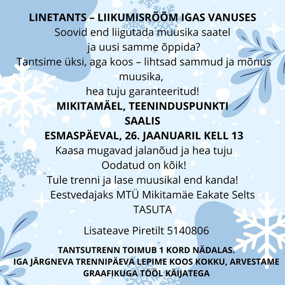 E 26. jaanuaril kell 13 Linetantsu trenn Mikitamäe teeninduspunkti saalis