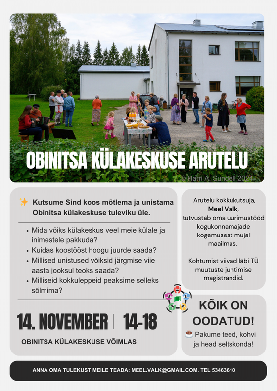 14. novembril kell 14 Obinitsa külakeskuse arutelu külakeskuses