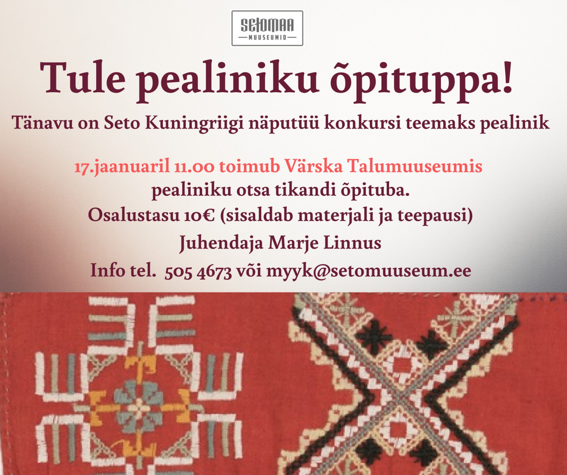 17. jaanuaril kell 11 pealiniku õpituba Värska talumuuseumis