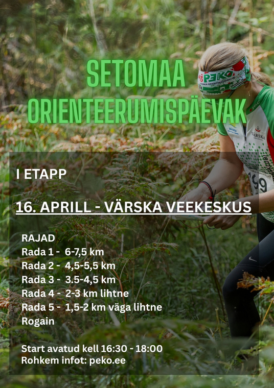 16. aprillil kell 16.30 Setomaa orienteerumispäevaku I etapp Värska veekeskuse juures