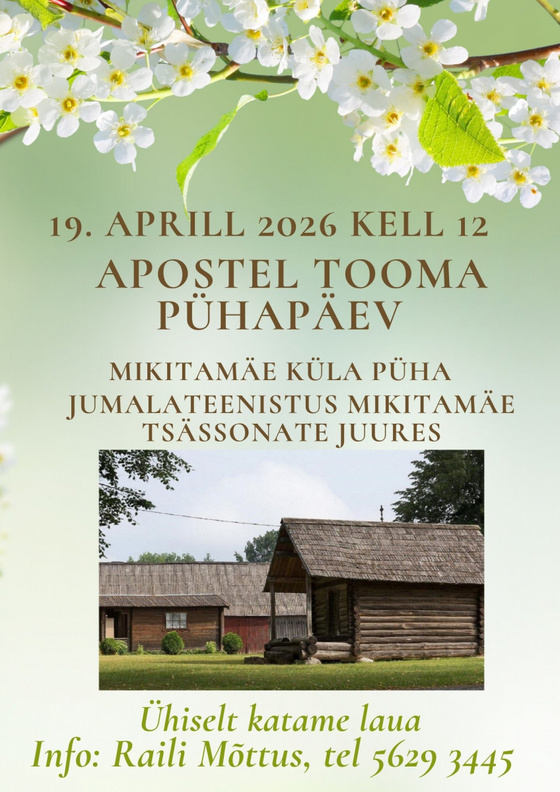 19. aprillil kell 12 apostel Tooma pühapäev, Mikitamäe küla püha Mikitamäe tsässonate juures