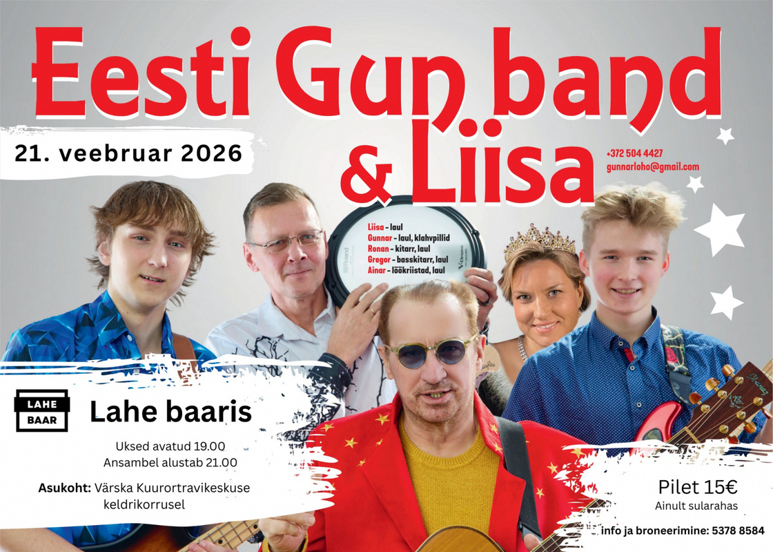 21. veebruaril kell 21 Tantsuõhtu Lahe baaris, esineb Eesti Gun Band & Liisa