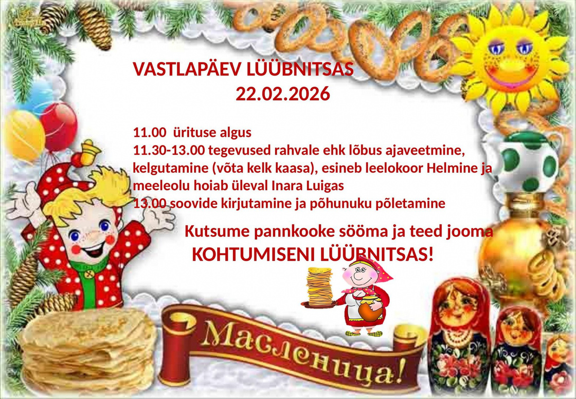 22. veebruaril kell 11 Maaselitsa tähistamine Lüübnitsa külakeskuse juures