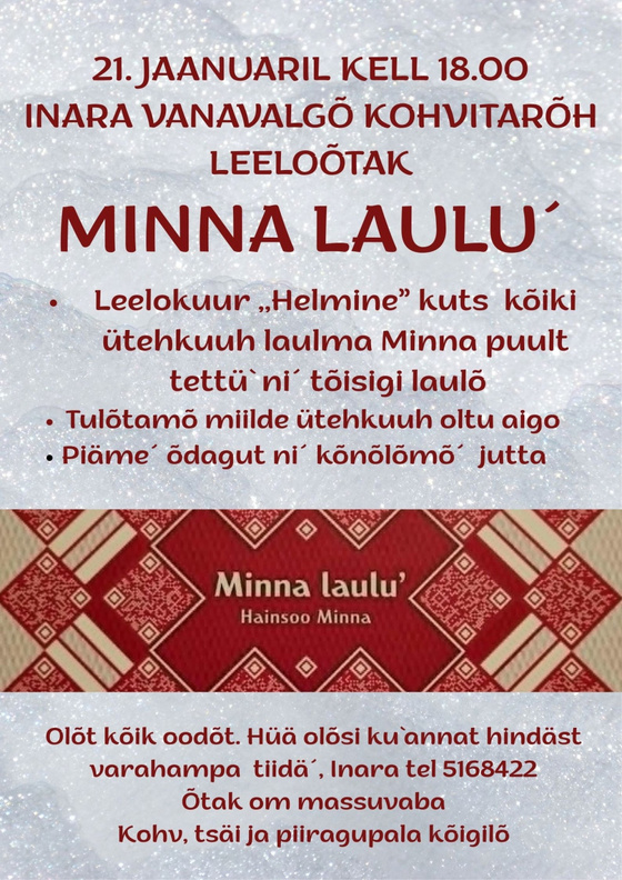 21. jaanuaril kell 17 Leelo ja Minna laulud Mikitamäe Inara Vanavalgõ kohvitarõs