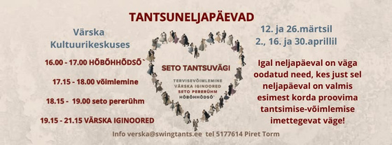 26. märtsil kell 16 Tantsuneljapäev Värska kultuurimajas