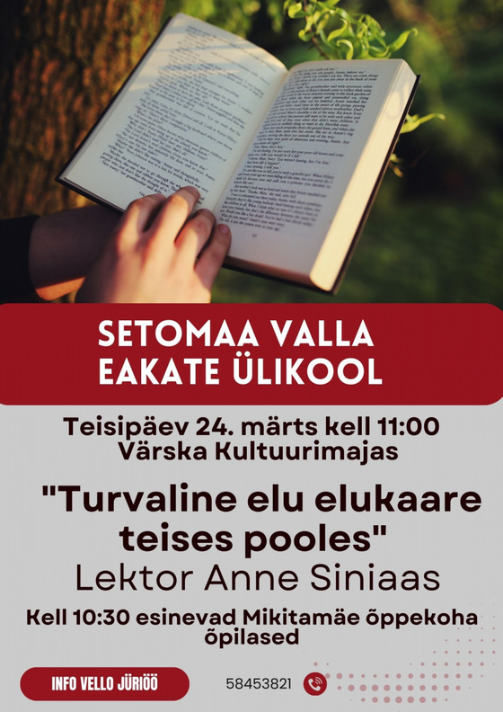 24. märtsil kell 11 Setomaa valla eakate ülikool Värska kultuurimajas. Kell 10:30 esinevad Mikitamäe õppekoha õpilased