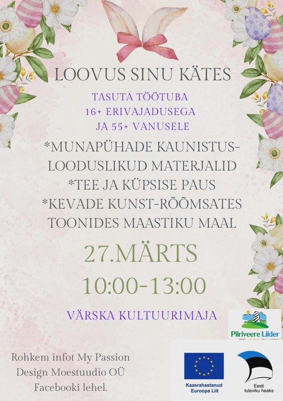 27. märtsil kell 10 Loovus sinu kätes. Tasuta töötuba Värska kultuurimajas