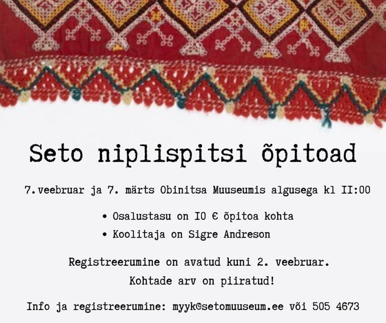 7. märtsil kell 11 Seto niplispitsi õpituba Obinitsa muuseumis