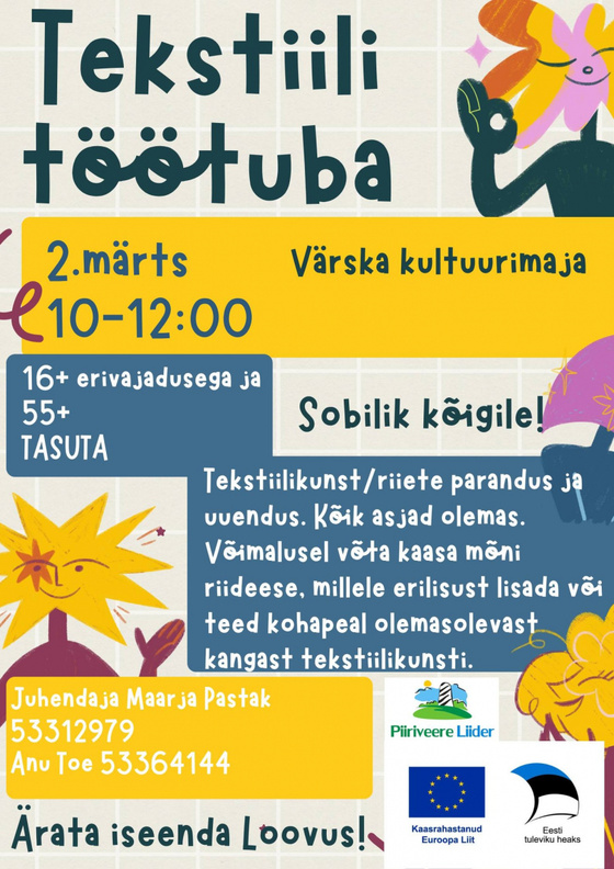2. märtsil kell 10-12 Tekstiili töötuba Värska kultuurimajas