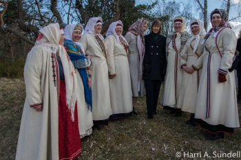 Kõik Setomaa õigõusu papi’ peivä’ ka palvust ja näüdässiva’ presidendile tsässonat. Tetti hulk pilte ja nüüd minti kirmasõ platsi mano, kos kohaliku’ pernase’ olli’ lavva katnu. Pidu jakkusi platsi pääl. Presidendiga oll veits keeruline juttu aia’, kuna tä oll kõikaig Leioma ja Timmo tähelepanust ümbritset. Nii jäi meil ka kargusõ kargamine sjookõrd tälle oppamada ja imäde hierarhiast arutamalda.
