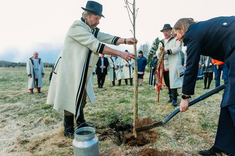 Nüüd minti Presidenti tervitänü Mokornulga koori laulu saatõl tsässona mano. Sääl istut President lõhmusõ. Peris nallakas oll kõrvalt kaia’ kuis Seto Miihhi Summ lauilsõ Härmä Ivokõist ja president kühveld mehemuudu mulda puu ümbre. Ju tuust puukõsõst no sääne sigivusmaagiline lõhmus kasus!