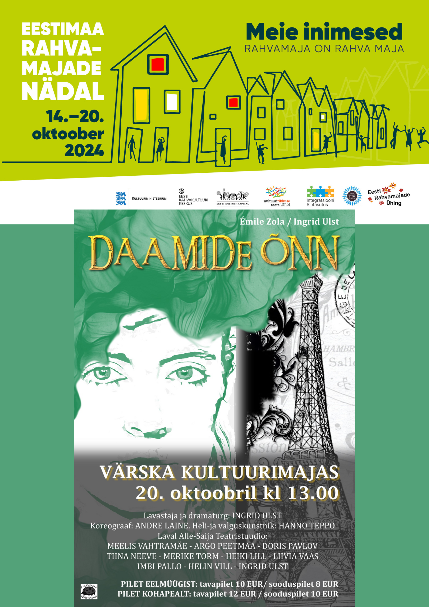 Alle-Saija Teatritalu etendus “Daamide Õnn” Värska kultuurimajas. Sündmus toimub Eestimaa Rahvamajade nädala raames.