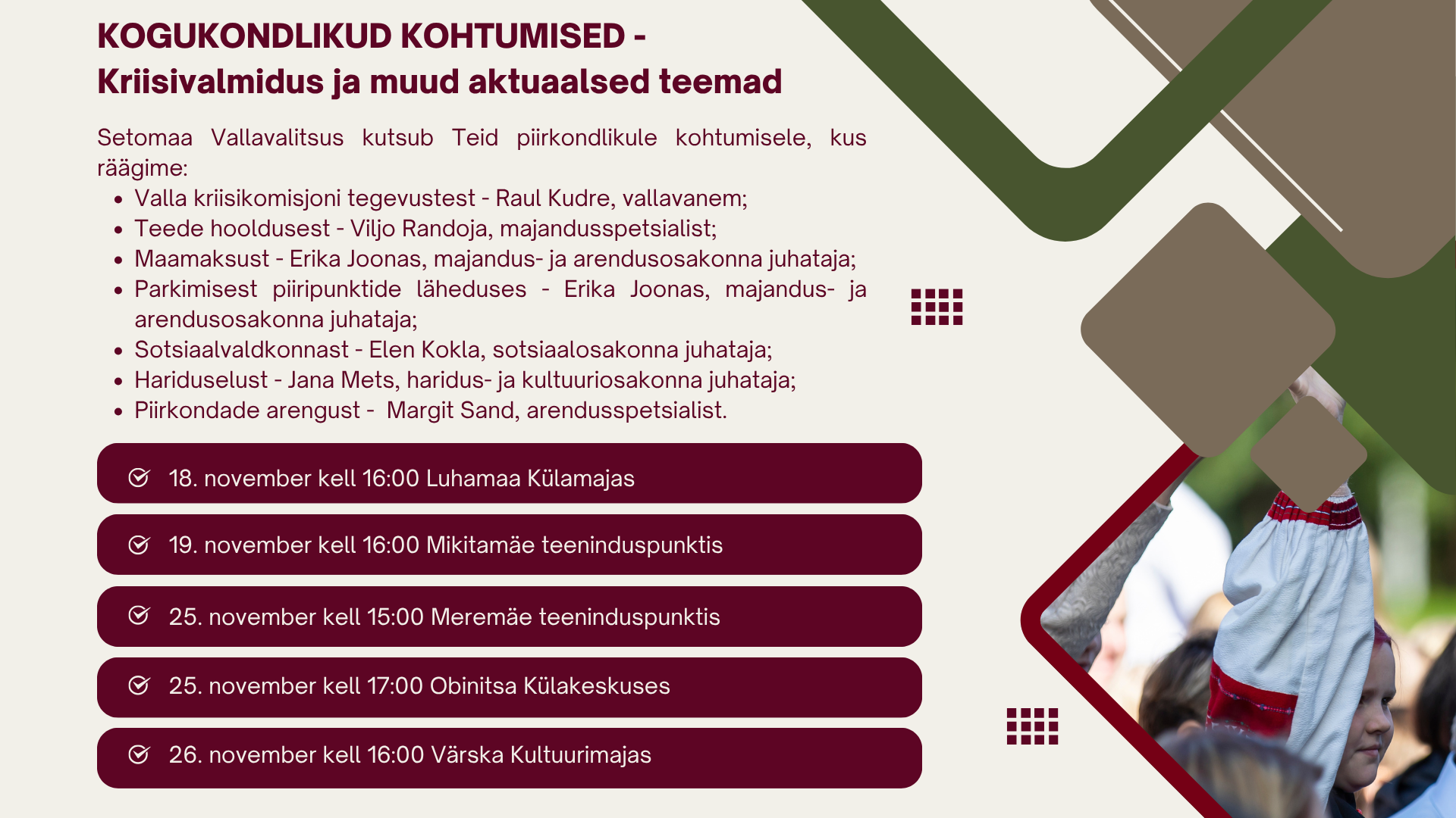 Kogukondlik kohtumine: kriisivalmidus ja muud aktuaalsed teemad26.11.2025 16:00Värska kultuurimaja Tagasi